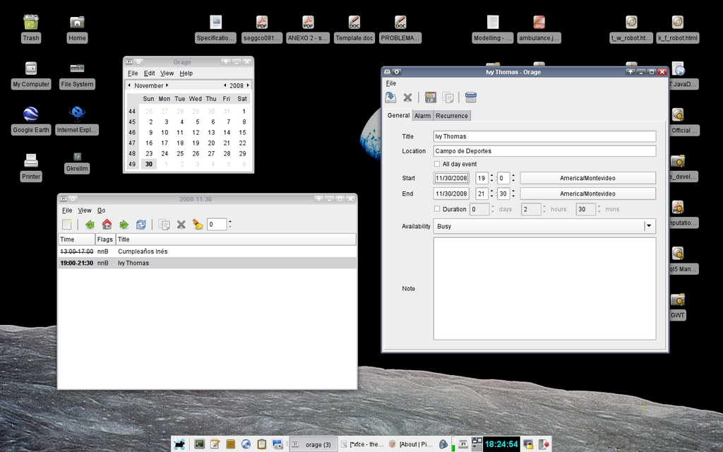 Finally, as an agenda and calendar, Orage (previously known as Xfcalendar) provides a system-tray clock (right-click on the panel to make it appear) and a personal agenda. You can store events and get alarms. You can schedule repeating, periodic events and full-day events (like birthdays or holidays). Orage even can work across different time zones (Figure 10).