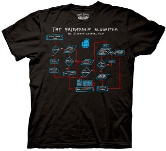 Sheldon's --of Big Bang Theory-- friendship algorithm flow chart on a 100% cotton T-shirt.